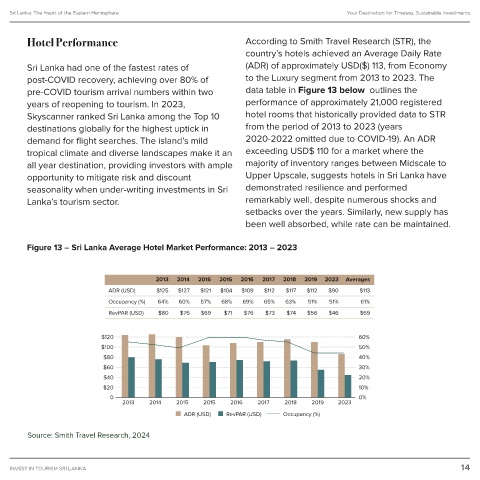 Figure 13 – Sri Lanka Average Hotel Market Performance: 2013 – 2023