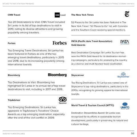Top 20 Destinations to Visit: CNN Travel included 52 Places to Go: Sri Lanka has been featured in The
